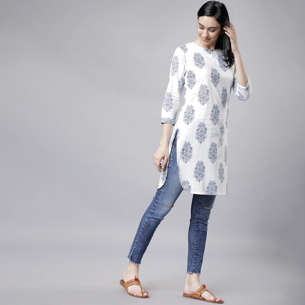 White & Blue Printed Tunic